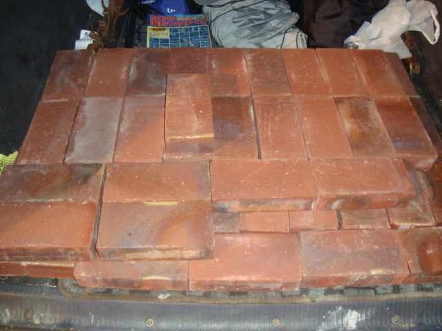 ブリコで売ってた耐火レンガ、火床部分86個を購入・・・1段目21個完成 耐火モルタルの粘度が分からず汚しまくって素人まるだしです・・・コツが分かったので次からは大丈夫・・・?